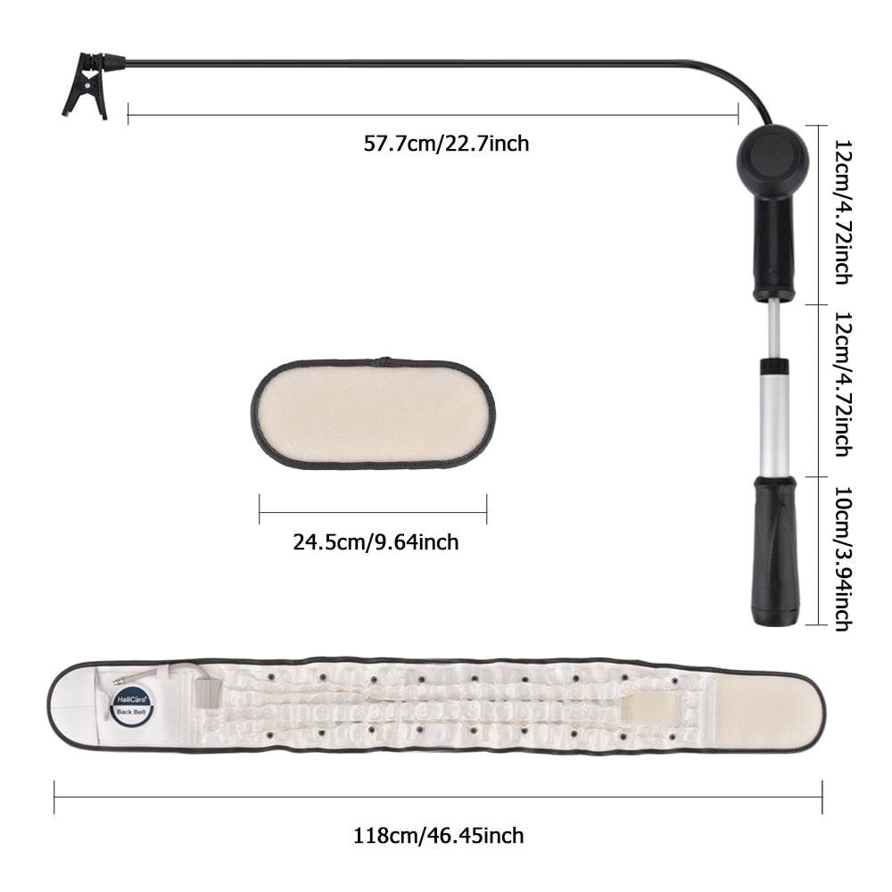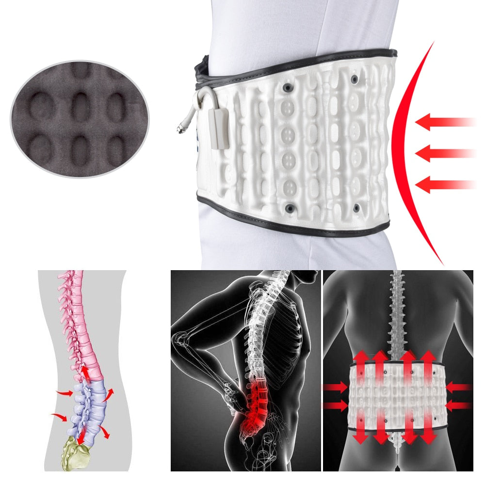 • Decompression of Lower Back Joints & Spinal Discs: The Decompression Belt stretches and retracts the lower back as it inflates with air. This gentle traction helps decompress the spinal discs. Decompression helps relieve pressure off pinched nerves, degenerative, herniated, and bulging discs.