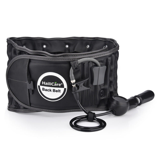 The Decompression Belt is not just a regular back support belt. When it is inflated, it increases in height by 4 inches (7.5 cm). The belt cradles the hip and the lower rib cage, it helps lift your upper body, unloading the weight of the lower back, allowing the muscles to relax. In doing so, the belt helps decrease pressure on your back, stretching tight muscles, and decompresses the discs. Less pressure means less pain.